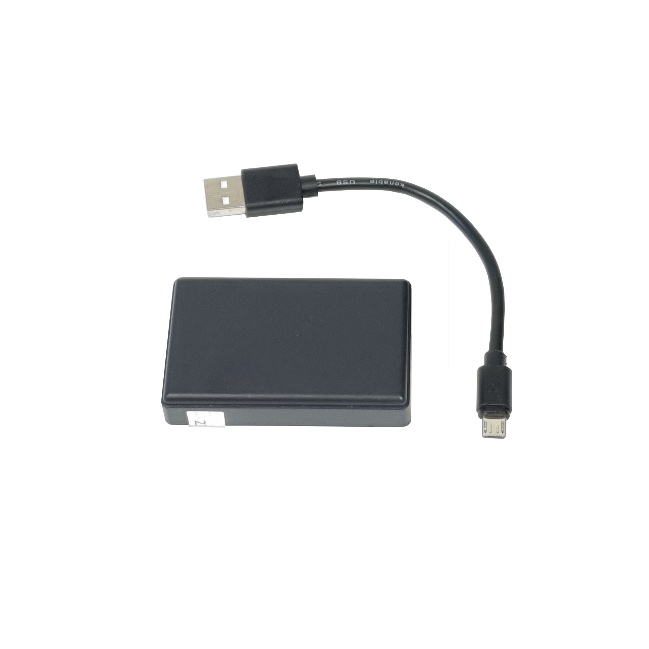 BTScanner needs a microUSB power adaptor, which is not an accessory but sold separately. We suggest this practical power adapter, which comes with a a self-adhesive velcro, also accessory) to hold the BTSCanner device as shown on the below picture: